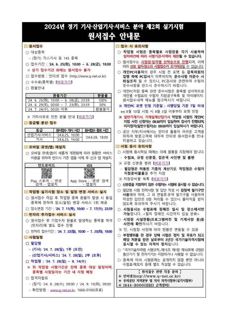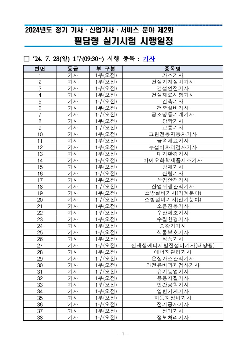 원서접수 안내문, 필답형 시험일정 및 시험장, 작업형 시설장비 현황(예정)을 공지하오니 원서접수 시 참고하시기 바랍니다.