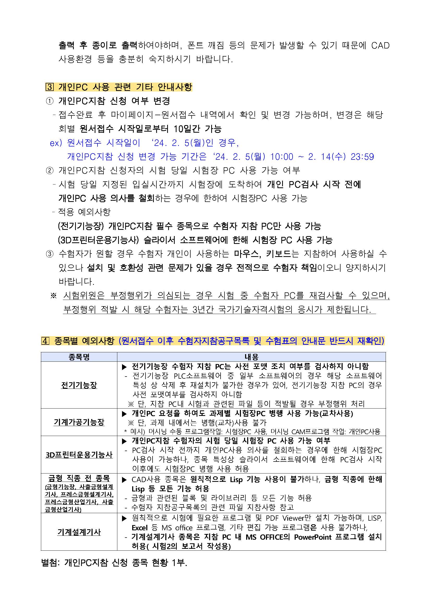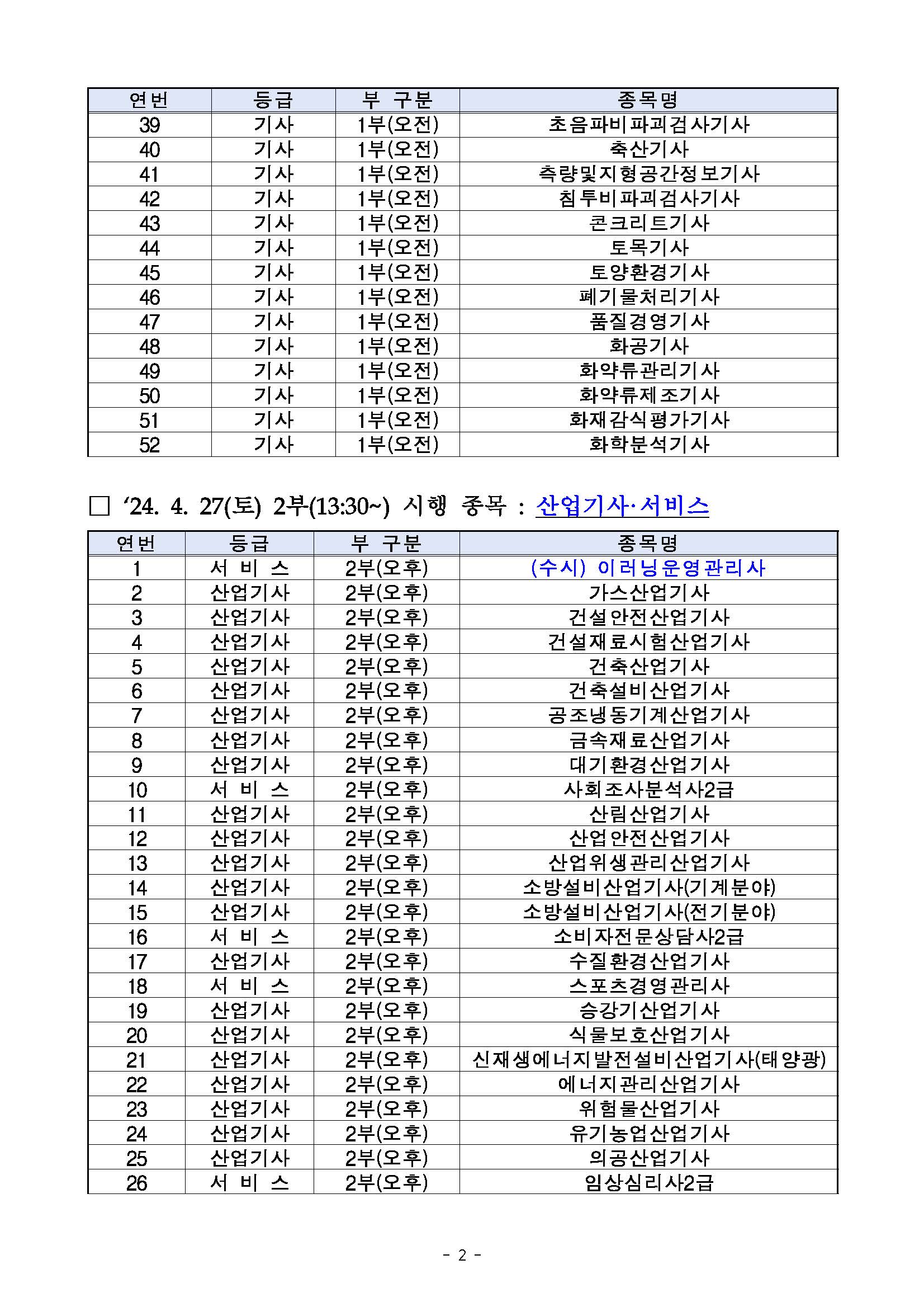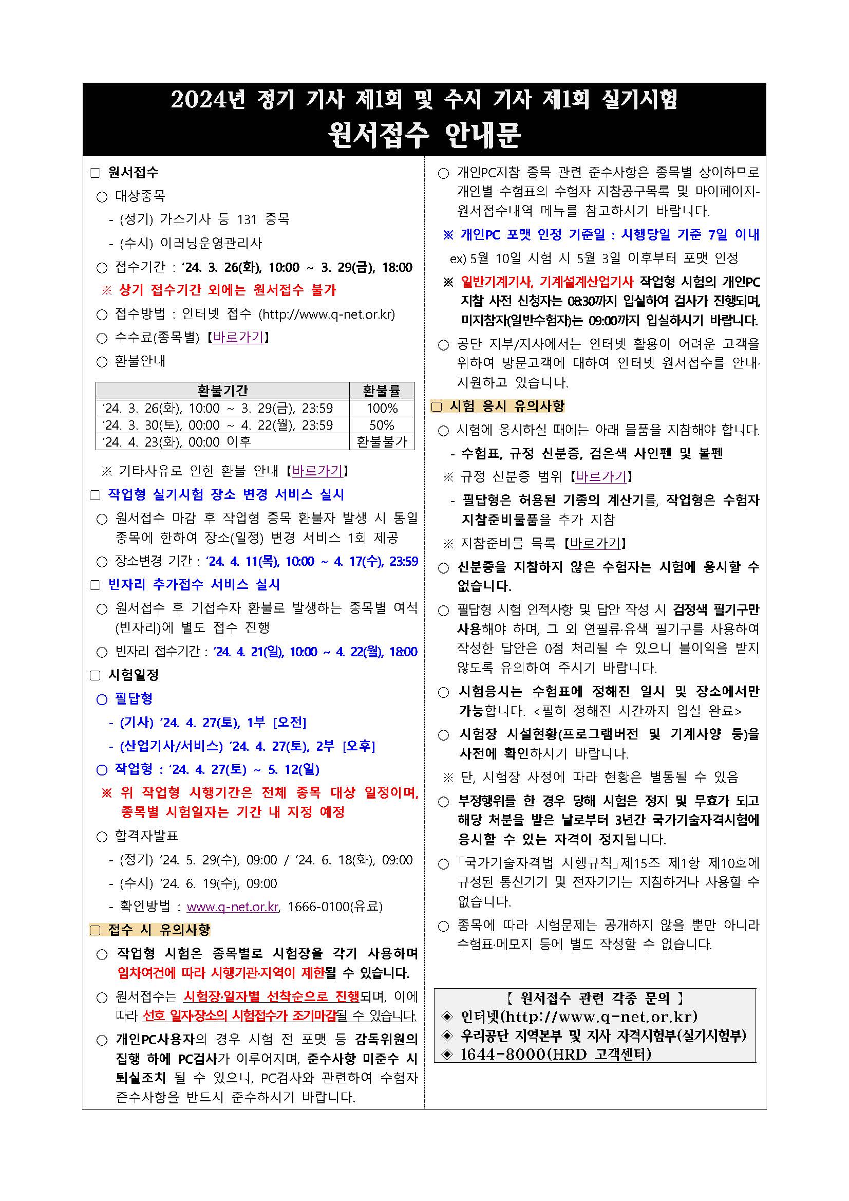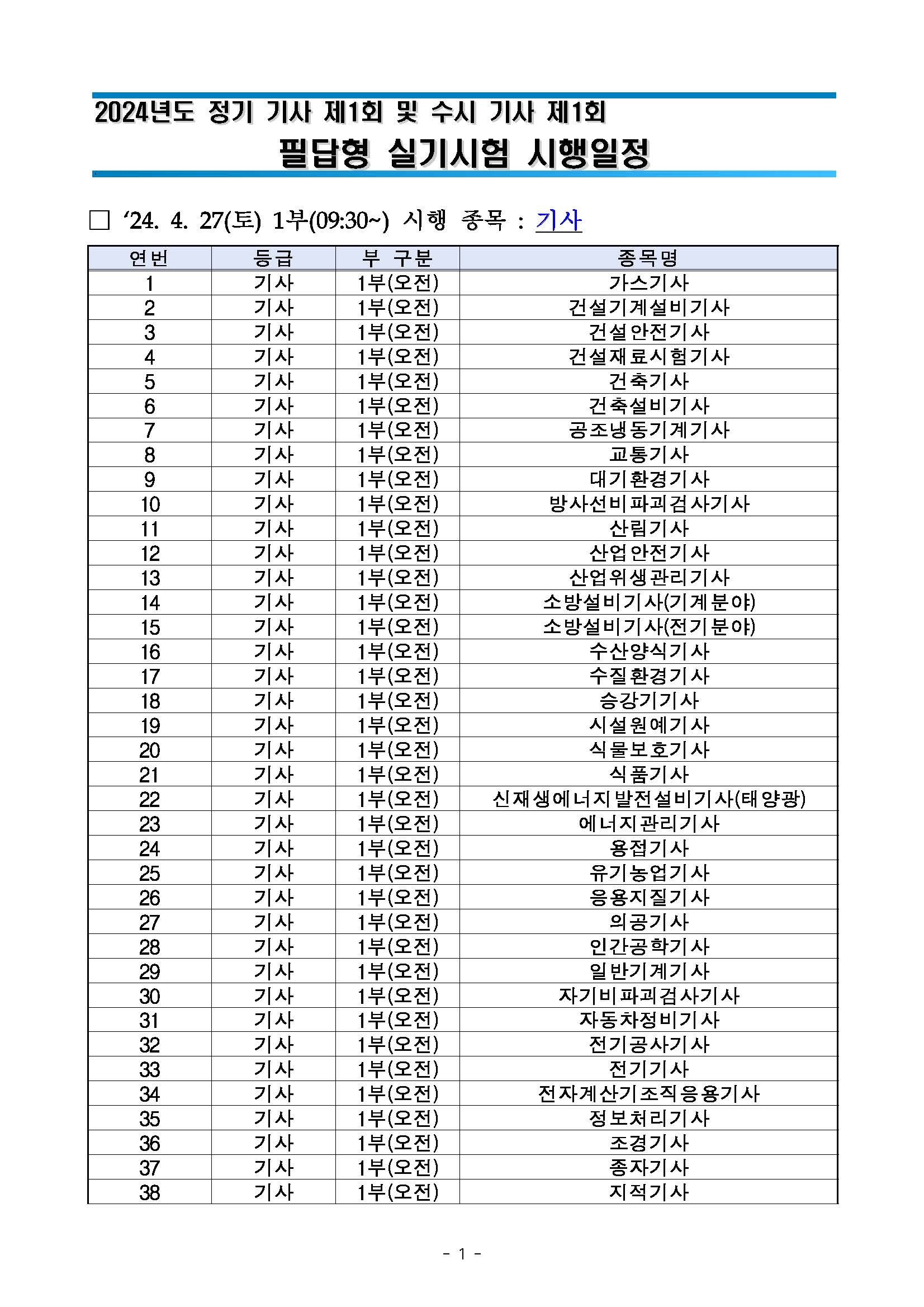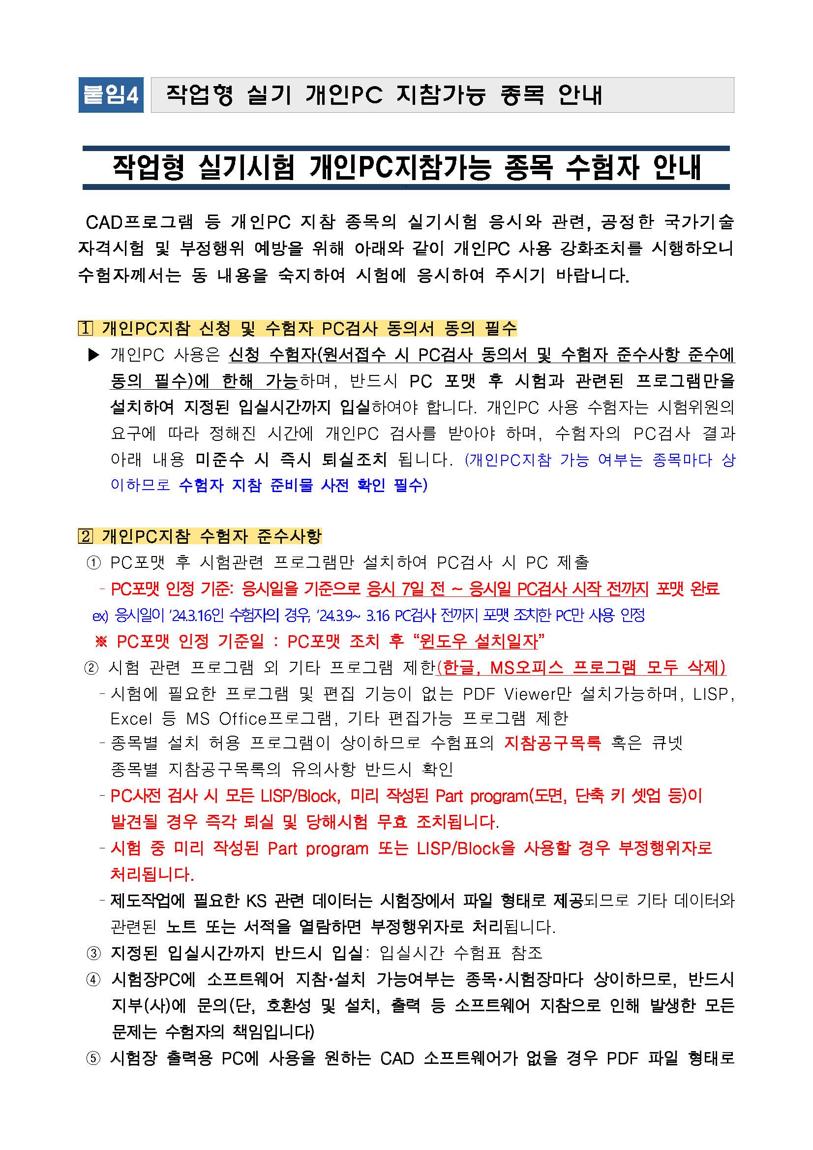 2024년도 정기 기사 제1회 및 수시 기사 제1회 실기시험
