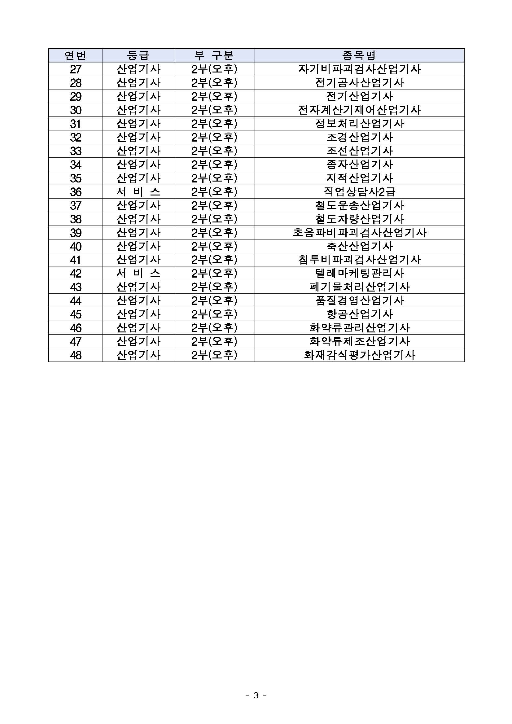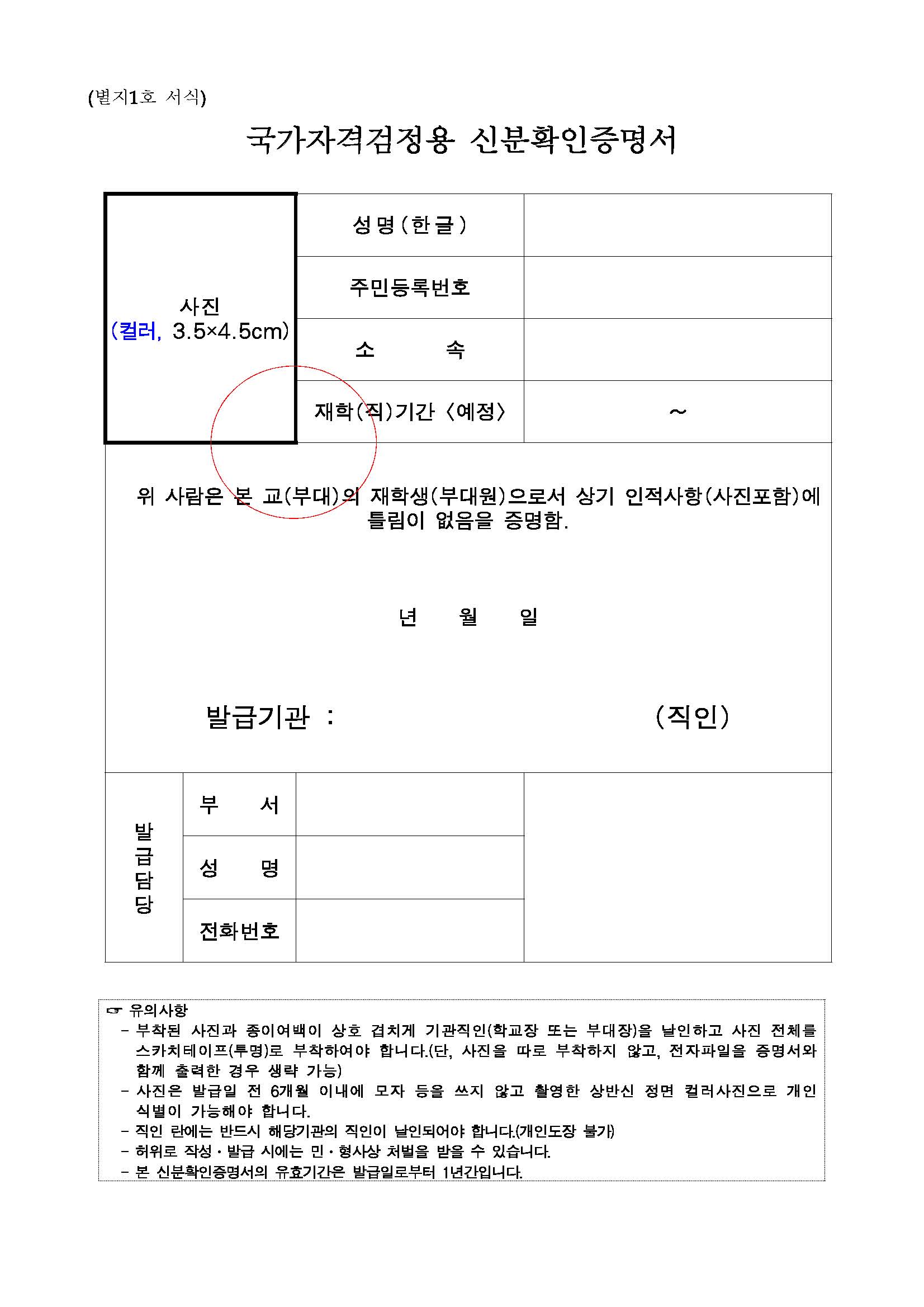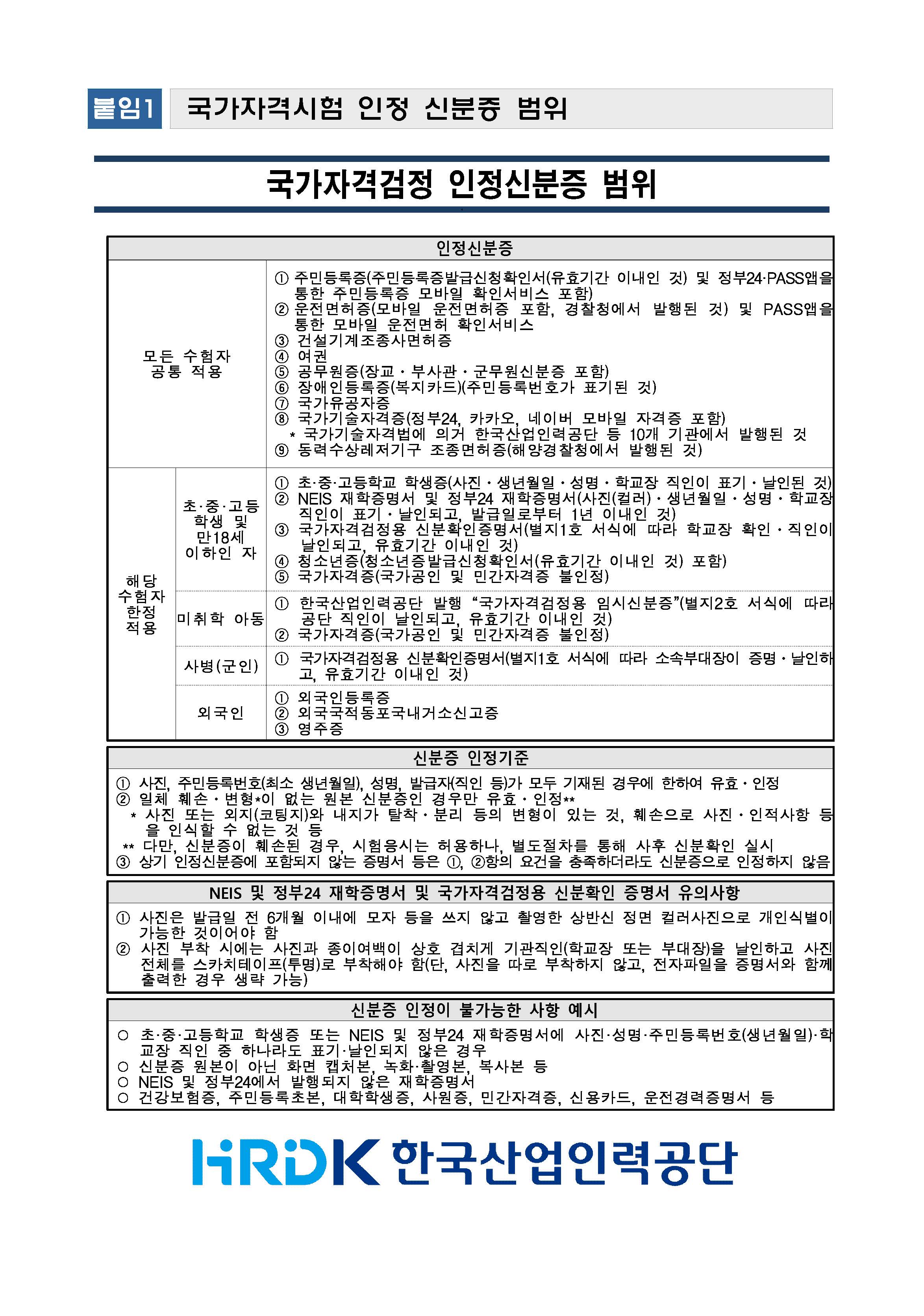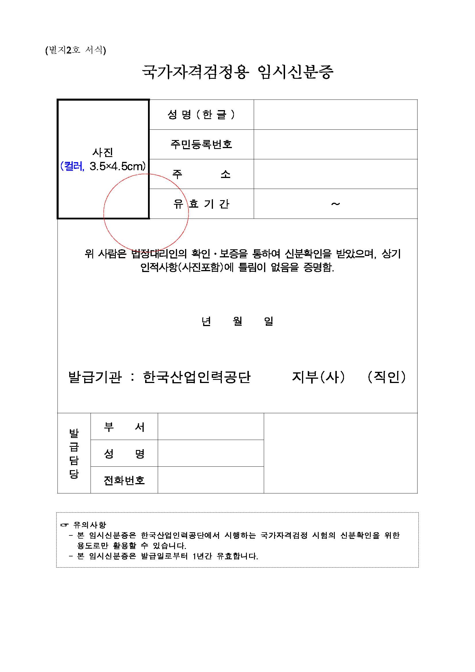 수험자 혼동 예방을 위하여 원서접수시 확인하실 수 있음을 양해하여 주시기 바랍니다.
