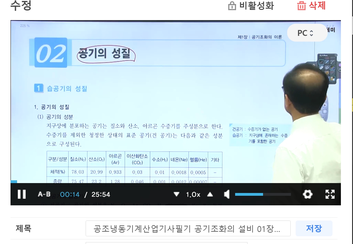 설명을 하고 있습니다. 1-16페이지가 통째로 스킵되었다고 하시는데 공기의 성질①(보강) 영상은