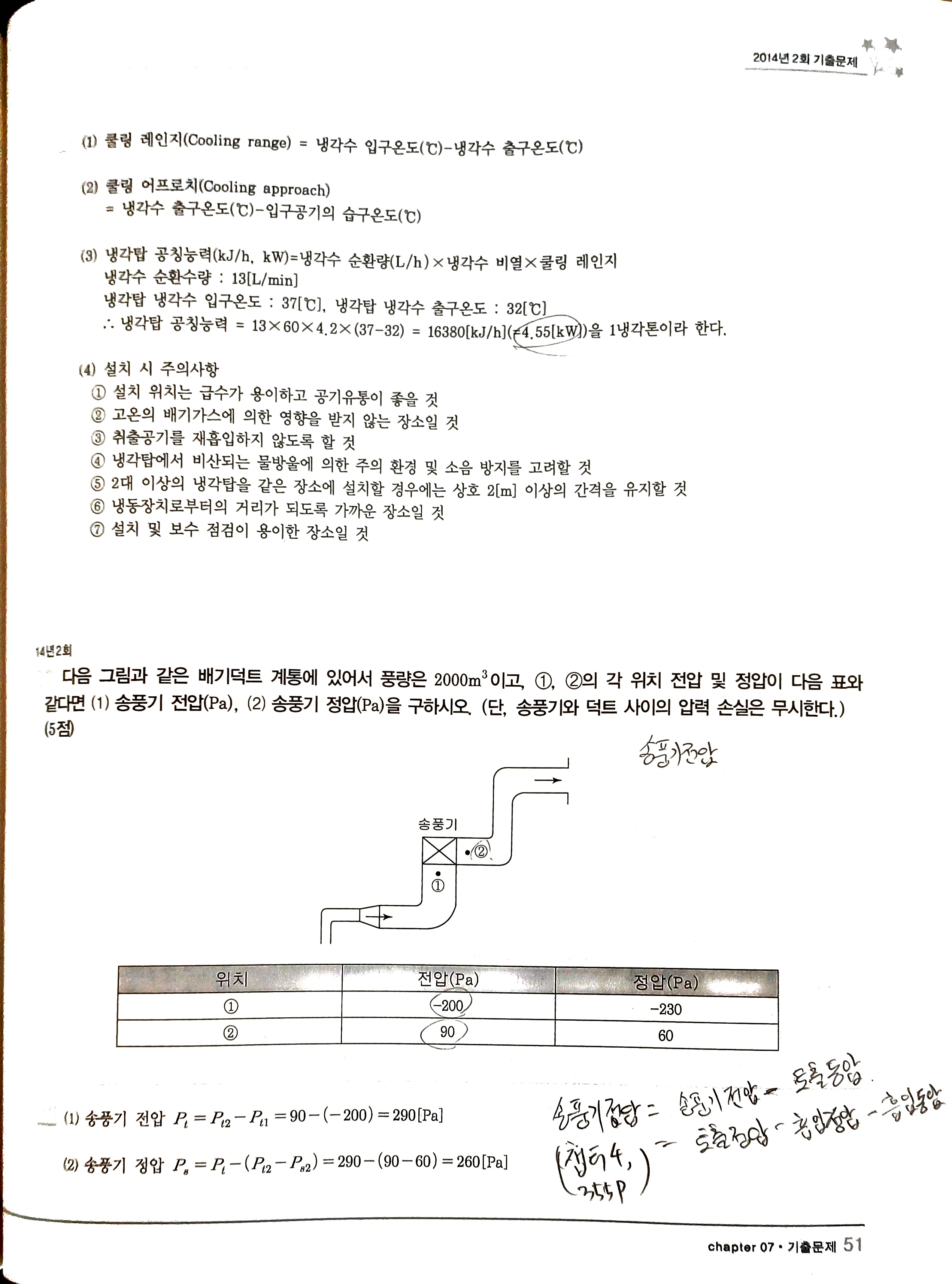 송풍기 정압구하는 식이 355P와 다른데 어떤걸로 알고 있어야 하나요?
