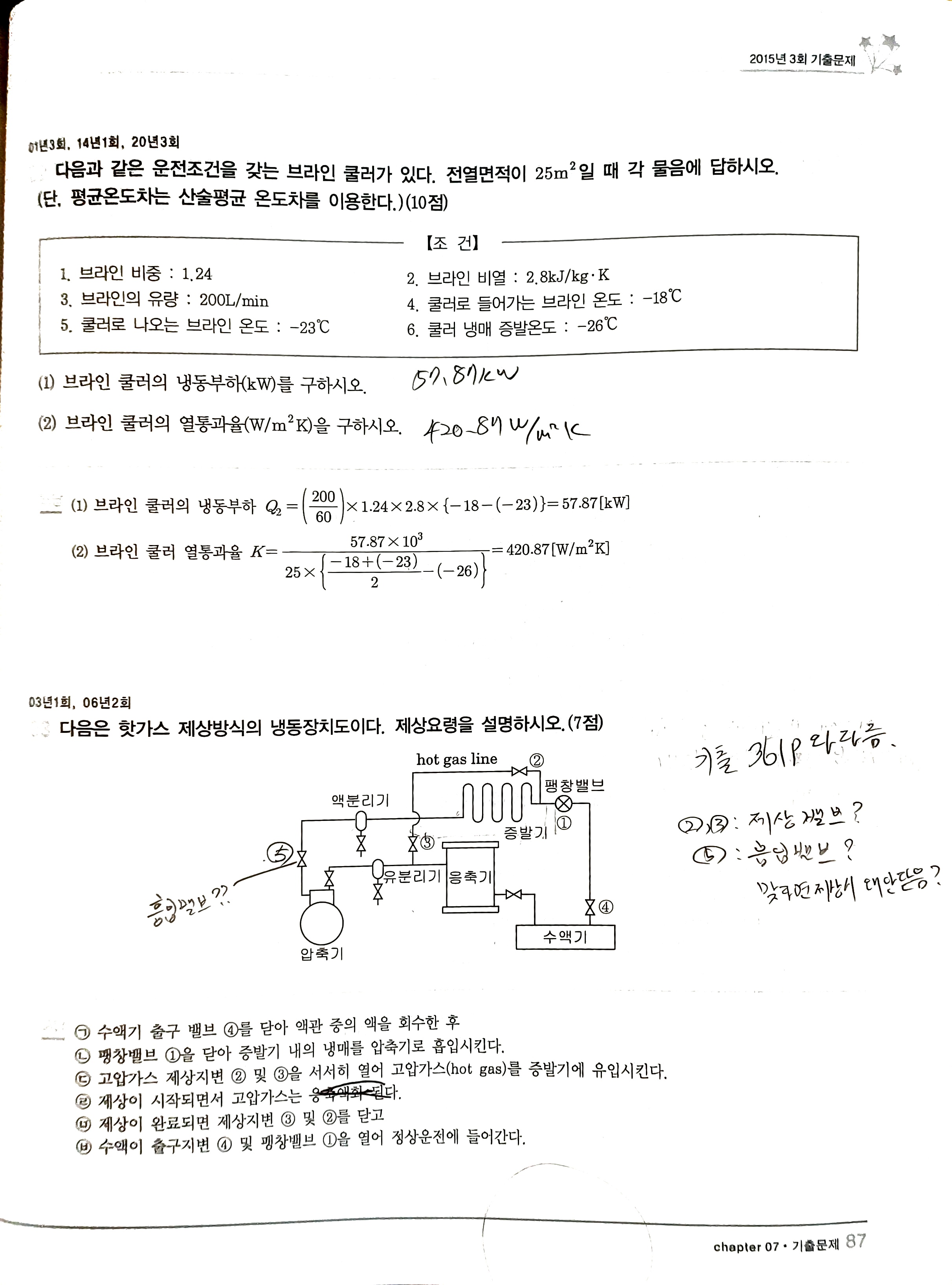 기출87P와 작동 방식이 좀 다른 듯 합니다. 증발기 한개짜리는 수액기 출구와 팽창밸브 출구 쪽을 닫고 냉매회수하고 흡입밸브는 닫지 않는 반면 두개짜리는 팽창밸브와 흡입밸브를 닫고 시작하며 냉매회수 없이 시작 하는데 액분리기가 유무의 차이 인가요? 또 1~5번 밸브의 명칭이 알고 싶습니다.