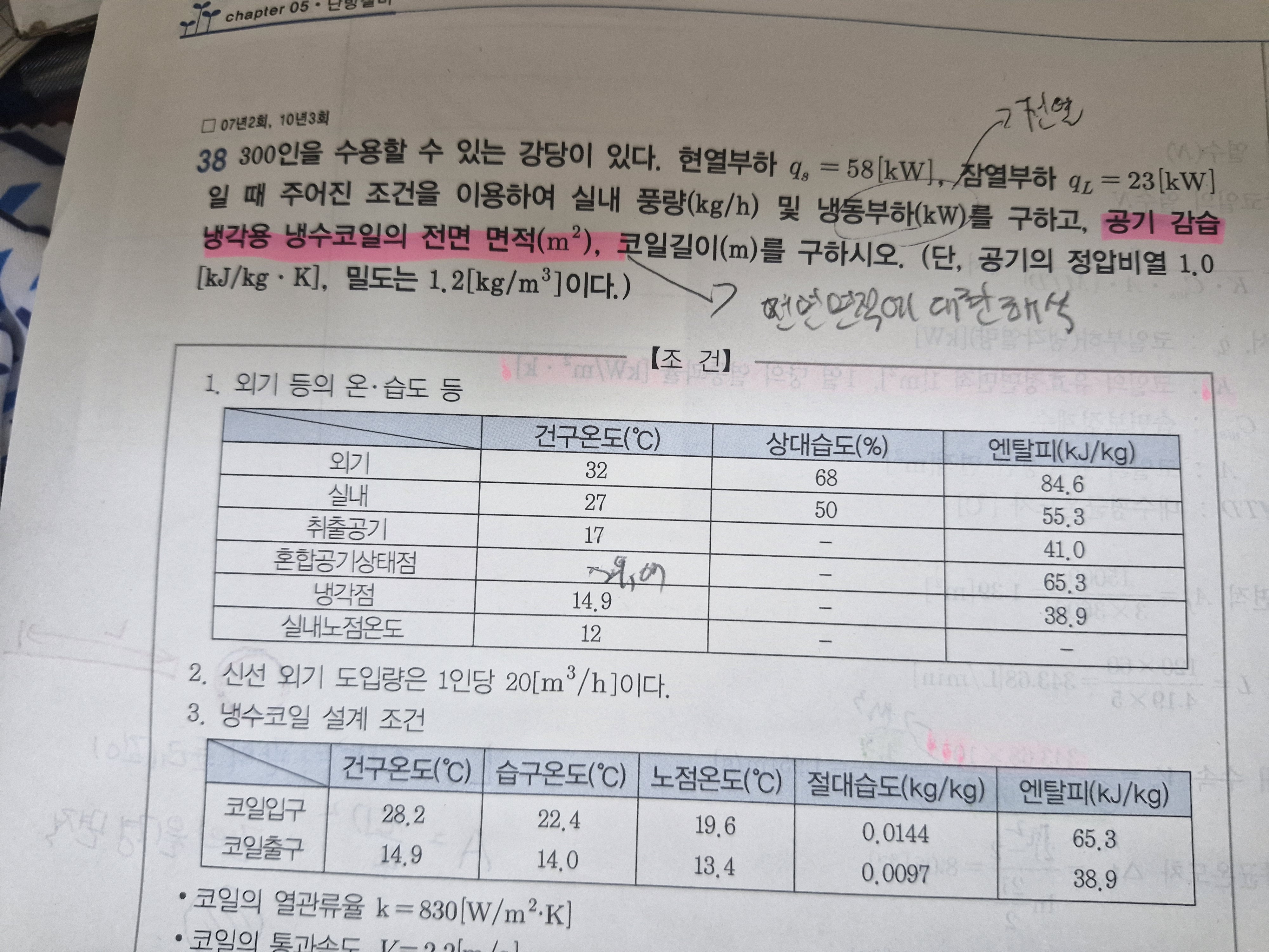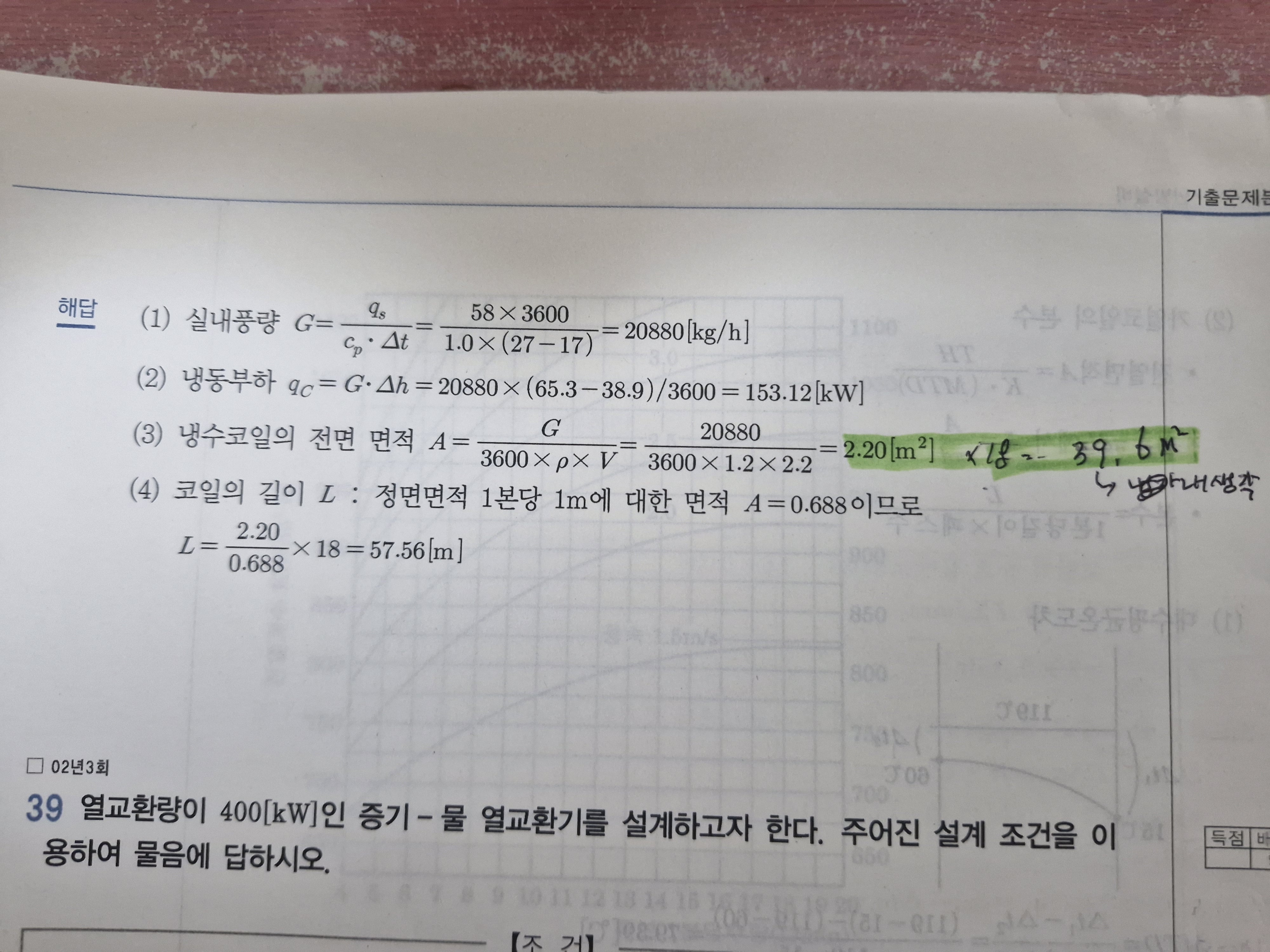 (3) 냉수코일의 전면면적은 공조기내 설치하는 코일의 전면면적이므로