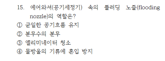4) 플러딩 노즐 : 엘리미네이터에 뭍은 먼지등을 세척하는 노즐로 어에와셔 맨뒤에 설치하여 엘리미네이터 쪽을 향해서 세척수를 분사하도록 설치