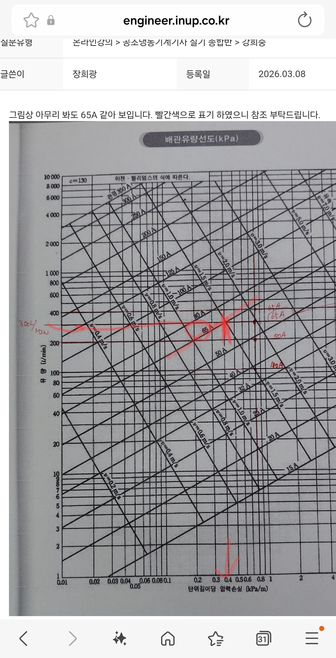 300유량과 65A의 교점이므로0.4가 됩니다.