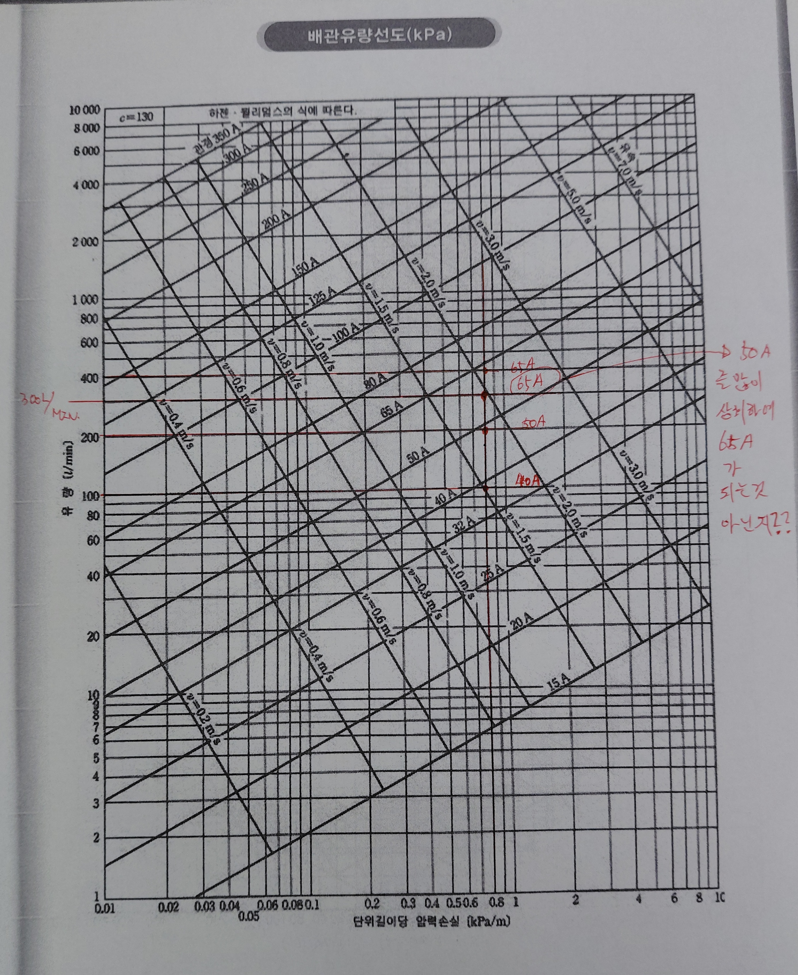 따라서 관경은 어떤 범위에서 저항이 작은 쪽인 큰 관경을 선택하게 됩니다.