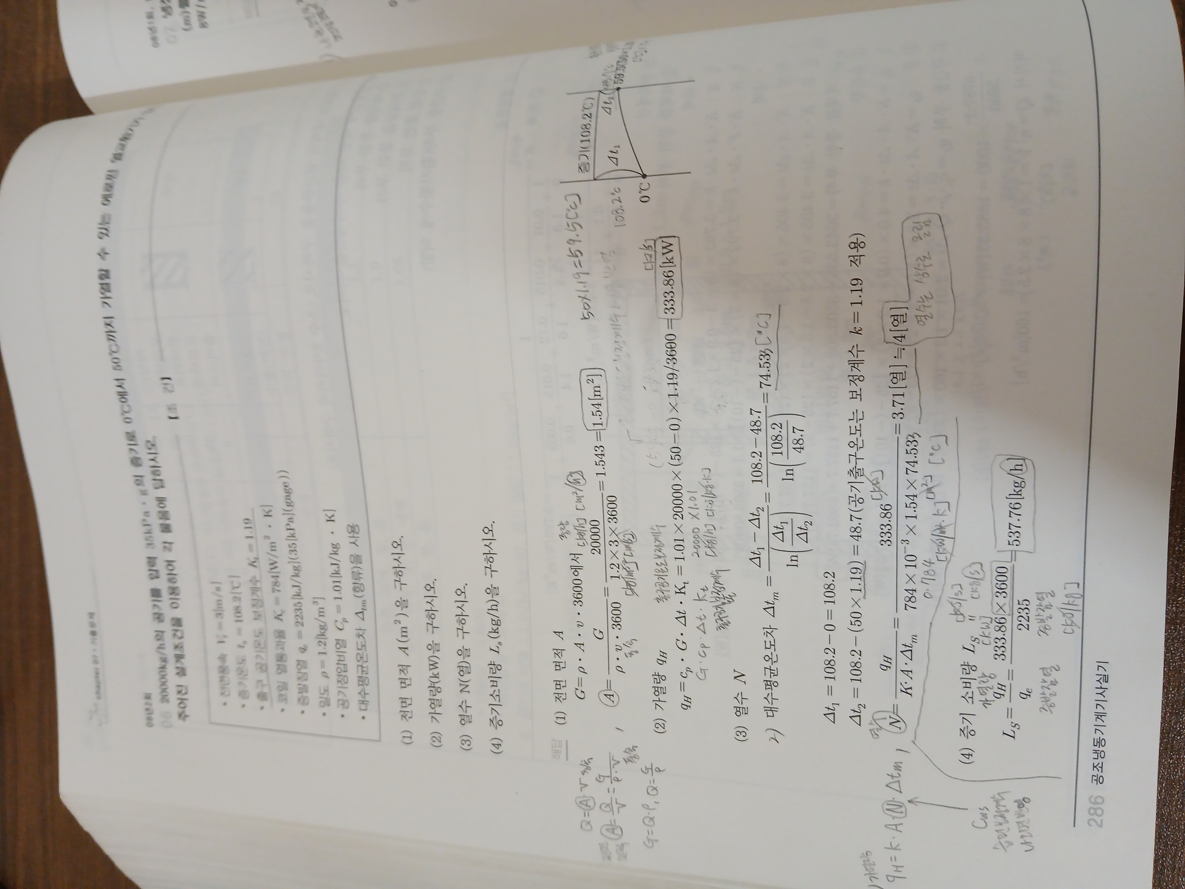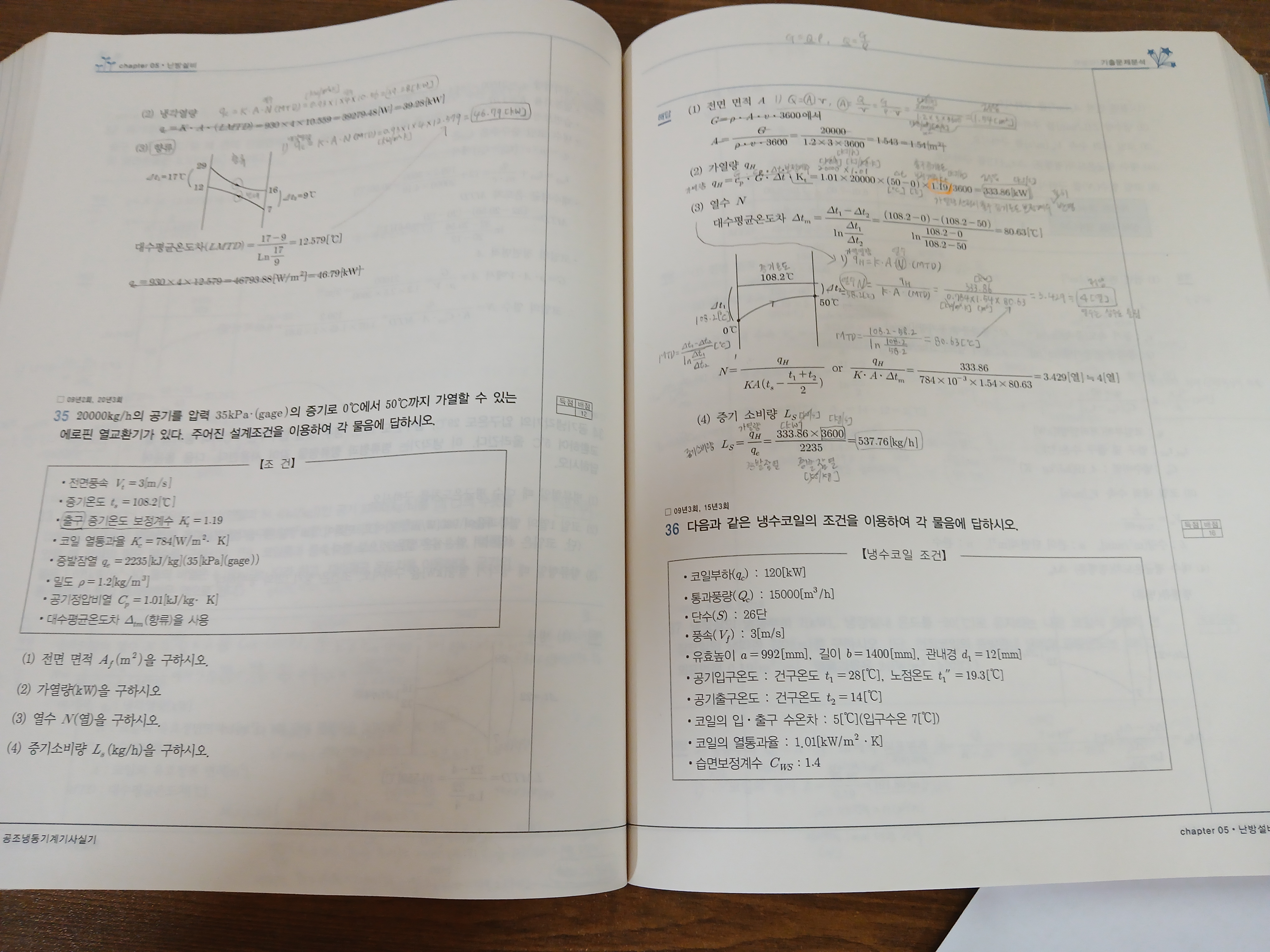 본문 5장에 나오는 문제는 출구 증기온도 보정계수로 복원되어 출구공기온도를 보정하는 것에 대한 오류가 발생하였습니다. 하여 2020년 3회 6번 문제와 해설로 수정할 계획입니다.