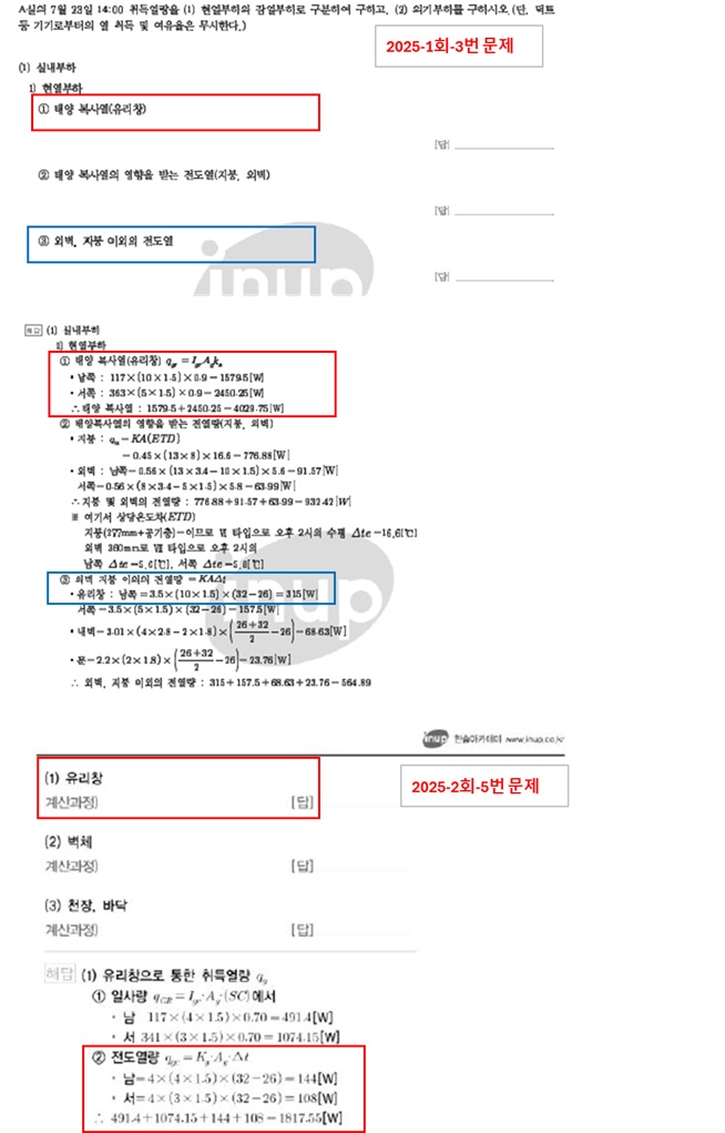 25년 2회는 유리창과 벽체로 구분하였으니 유리창에 복사인 일사부하와 유리창의 관류(전도) 손실부하를 같이 계산해야 합니다.