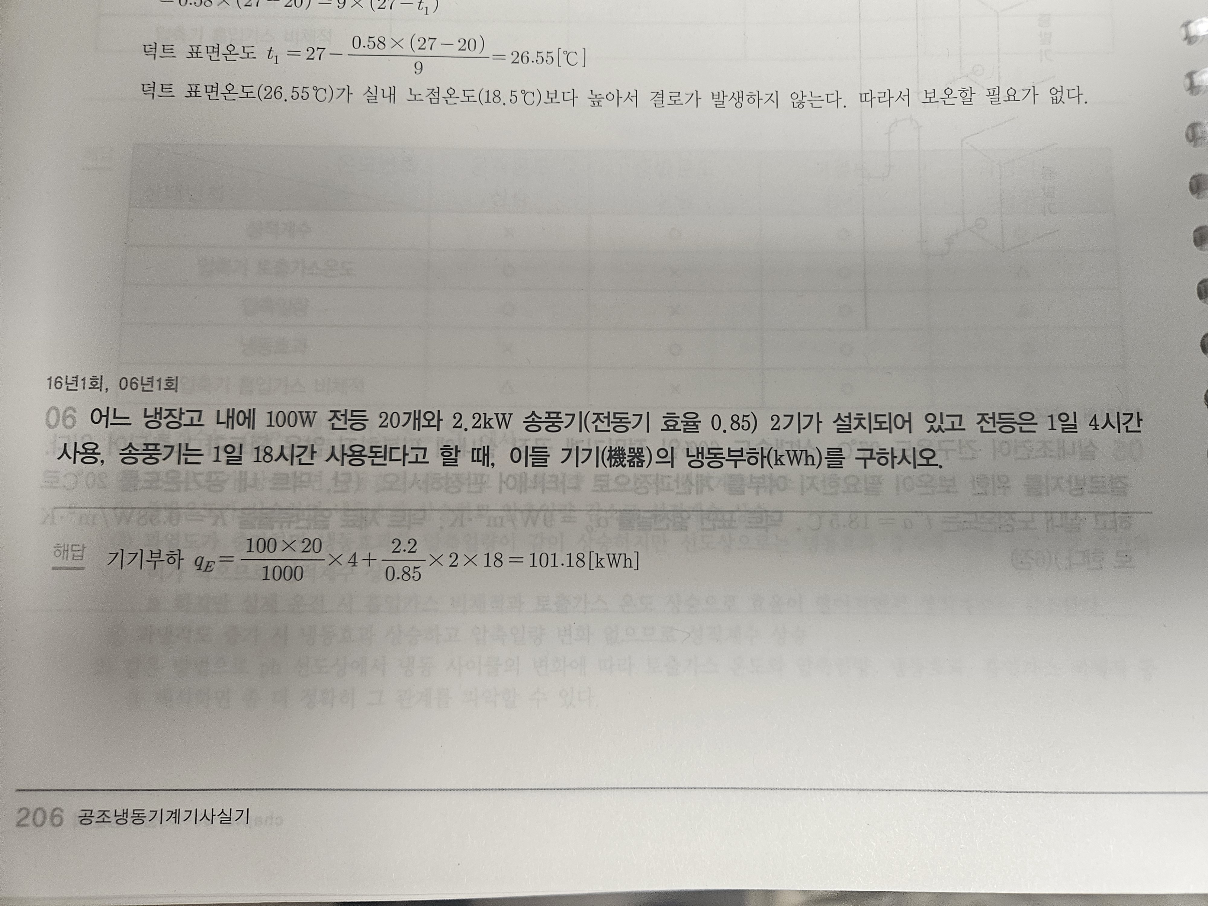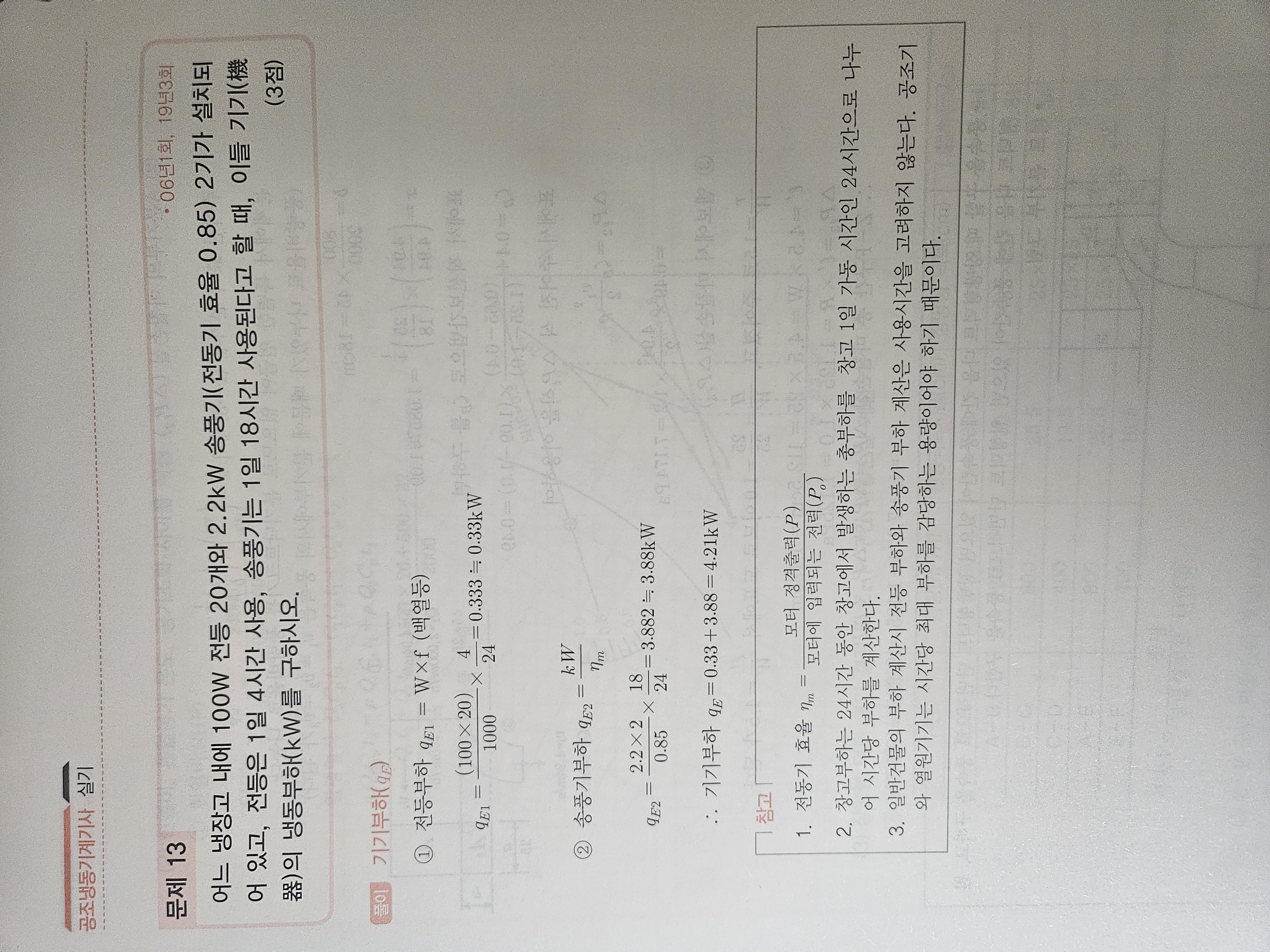 교수님 기출문제 19년 3회 6번 문제와 똑같은데 냉동부하(KWh)가 아니고 (KW)로 나왔는데